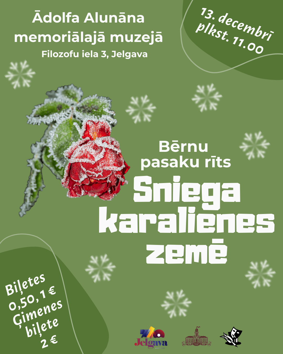 Sestdien, 13. decembrī, plkst. 11.00 aicinām jaunākos apmeklētājus ziemas noskaņās Ādolfa Alunāna memoriālajā muzejā bērnu pasaku rītā “Sniega karalienes zemē”!