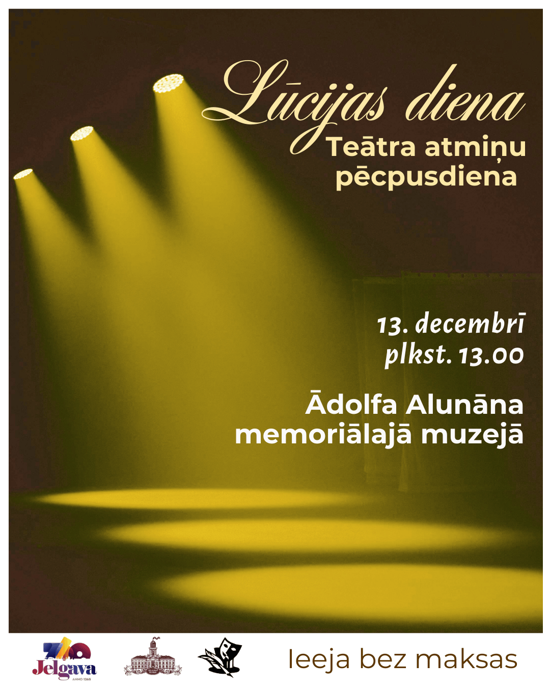 Lūcijas dienā laipni gaidīti visi, kuri kaut reizi spēlējuši kādā Alunāna teātra iestudējumā, kā arī tik uzticīgie Jelgavas skatītāji!